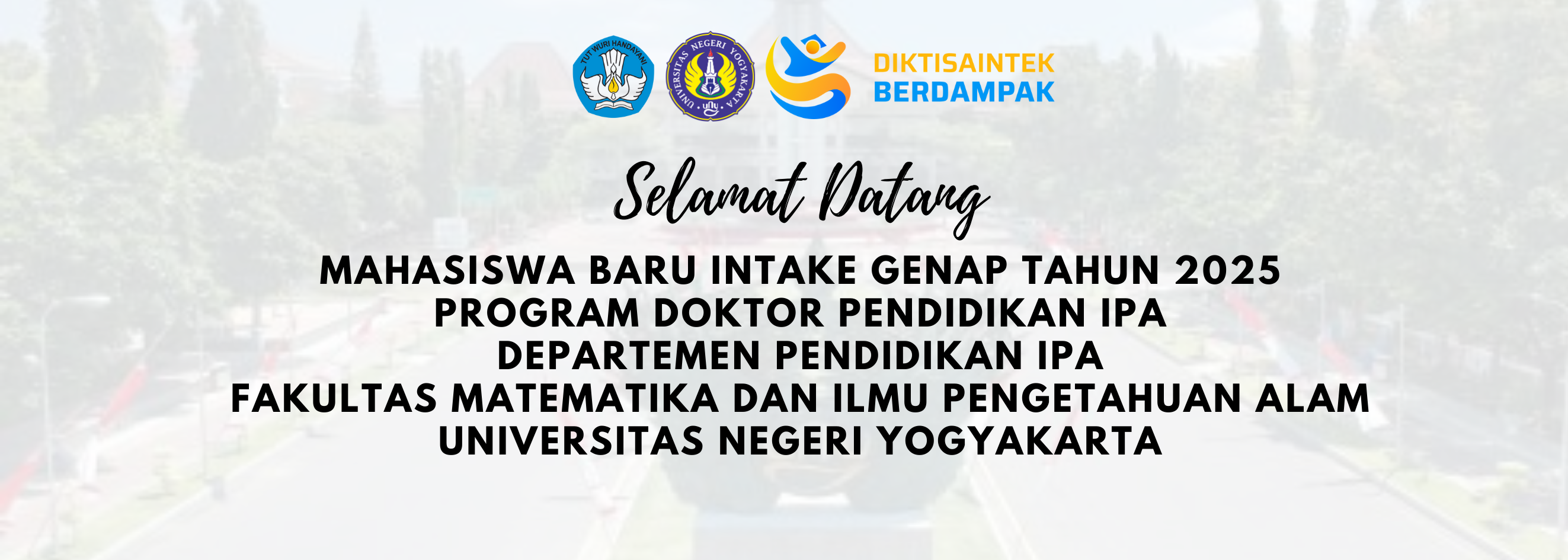 Post date: 15/08/2025 - 10:33Yogyakarta, 11 Agustus 2025 — Program Studi Doktor (S3) Pendidikan IPA FMIPA Universitas Negeri Yogyakarta menyelenggarakan kegiatan Pengenalan Kehidupan Kampus bagi Mahasiswa Baru (PKKMB) pada Senin, 11 Agustus 2025 pukul 13.00 WIB. Kegiatan ini...
