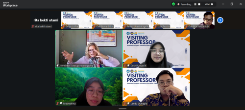 Program Studi S3 Pendidikan IPA FMIPA Universitas Negeri Yogyakarta menyelenggarakan kegiatan Visiting Professor bersama Prof. Henriette Tolstrup Holmegaard, Ph.D. dari University of Copenhagen, Denmark, pada Kamis, 2 Oktober 2025 pukul 14.00 WIB melalui Zoom Meeting. Kegiatan ini diikuti oleh kurang lebih 40 mahasiswa Program Doktor Pendidikan IPA FMIPA UNY sebagai bagian dari upaya memperluas wawasan penelitian dan pengembangan keilmuan di bidang pendidikan sains. Acara dipandu oleh Desy Purwasih, M.Pd. selaku moderator, dan dibuka secara resmi oleh Prof. Dr. Insih Wilujeng, M.Pd., Koordinator Program Studi S3 Pendidikan IPA. Dalam sambutannya, Prof. Insih menyampaikan bahwa kegiatan ini menjadi kesempatan berharga bagi mahasiswa doktoral untuk memperoleh wawasan internasional terkait pendekatan penelitian kualitatif, khususnya dalam konteks pembentukan identitas sains peserta didik.