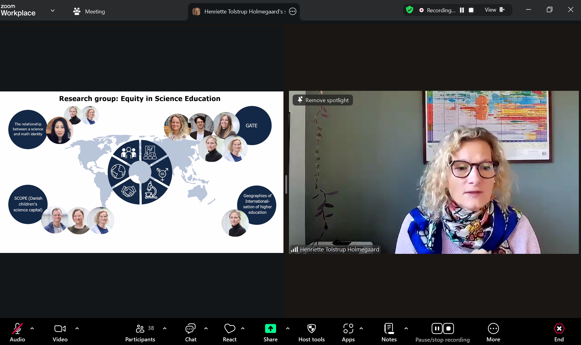 Sesi utama diisi dengan pemaparan materi oleh Prof. Henriette Tolstrup Holmegaard yang mengangkat tema “Constructing Science Identity in Education: A Qualitative Research Perspective.” Beliau menjelaskan bagaimana pendekatan penelitian kualitatif dapat digunakan untuk memahami proses pembentukan identitas sains dalam pendidikan, termasuk bagaimana pengalaman belajar, lingkungan sosial, dan persepsi diri berkontribusi terhadap perkembangan identitas ilmiah peserta didik. Setelah penyampaian materi, kegiatan dilanjutkan dengan sesi diskusi interaktif. Para peserta antusias mengajukan pertanyaan terkait metodologi penelitian kualitatif, desain studi longitudinal, serta penerapan teori identitas dalam konteks pendidikan sains di Indonesia. Prof. Henriette memberikan tanggapan yang mendalam dan reflektif, memperkaya pemahaman peserta tentang kompleksitas pembentukan identitas sains.